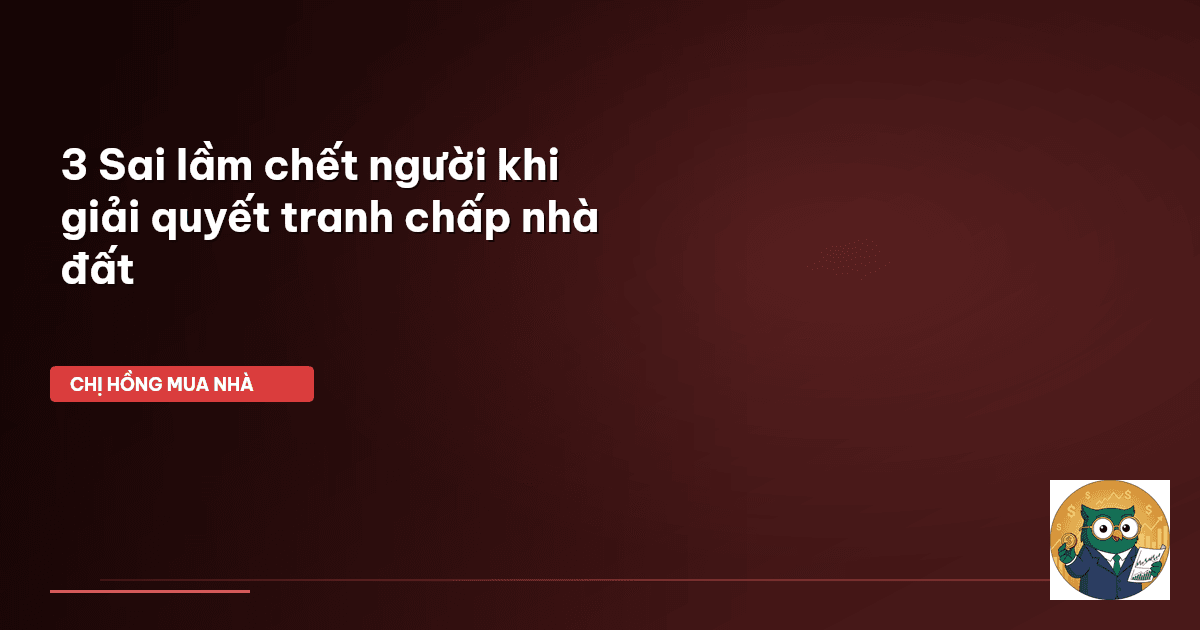 ⏱️ 13 phút đọc · 2584 từ Chào cả nhà, Chị Hồng BĐS đây! Ôi dào, nói thật với cả nhà, làm mẹ bỉm như mình, cứ nghe đến chuyện tranh chấp nhà đất là y như rằng thấy đau đầu nhức óc rồi. Cả một đời vợ chồng gom góp, tiết kiệm từng đồng mới mua được căn nhà, mảnh đất, vậy mà lỡ có trục trặc pháp lý thì đúng là 'đổ sông đổ biển', bao nhiêu công sức có khi đi tong. Nhiều người cứ nghĩ chuyện tranh chấp là vô cùng phức tạp, rắc rối, phải ra tòa mất cả chục năm trời, nhưng Chị Hồng nói thật: nếu mình nắ…