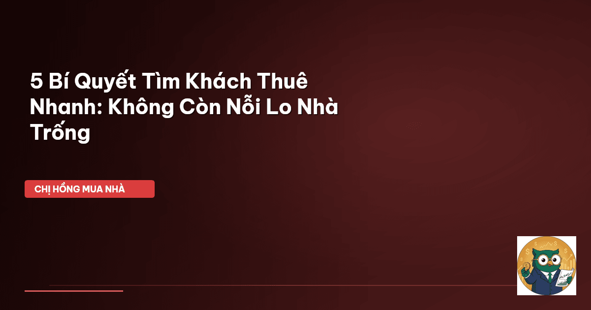 ⏱️ 11 phút đọc · 2188 từ Giới Thiệu: Nỗi Lo Nhà Trống Và Cơ Hội Dòng Tiền Thụ Động Chào cả nhà Cú Thông Thái! Chị Hồng BĐS biết là nhiều gia đình mình đang ấp ủ giấc mơ có căn nhà thứ hai để cho thuê, có thêm một khoản thu nhập đều đặn, đúng không nào? Nghe thì hấp dẫn lắm, nhưng thực tế thì không ít người mua nhà xong lại đau đầu vì nhà bị bỏ trống dài ngày . Căn nhà đẹp đấy, vị trí cũng ổn đấy, nhưng sao mãi không thấy khách thuê ưng ý? Cứ mỗi tháng nhà trống là mỗi tháng mất đi tiền thuê, mà …