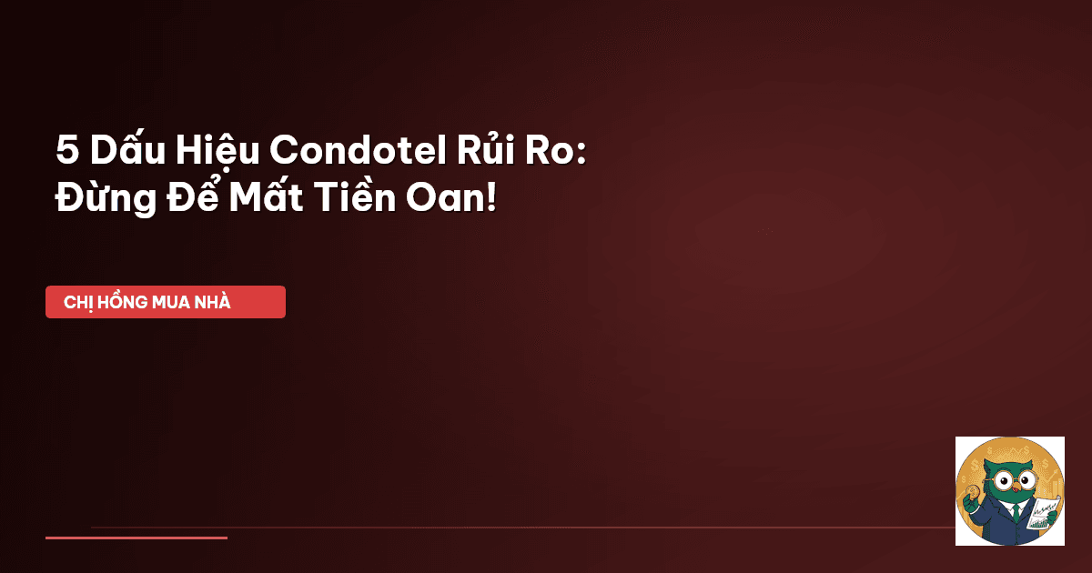 Hôm nay, chị Hồng cùng Cú Thông Thái sẽ "vạch trần" 5 dấu hiệu cảnh báo một dự án Condotel có rủi ro cao, giúp các mẹ bỉm nhà mình tỉnh táo hơn, tránh xa những cạm bẫy tài chính không đáng có. Đừng để những đồng tiền mồ hôi nước mắt của gia đình mình bị cuốn vào những dự án "ma" hay "treo" nhé. Việc trang bị kiến thức giống như có một tấm bùa hộ mệnh vậy đó, giúp mình an tâm hơn rất nhiều khi quyết định đầu tư bất kỳ loại hình BĐS nào.