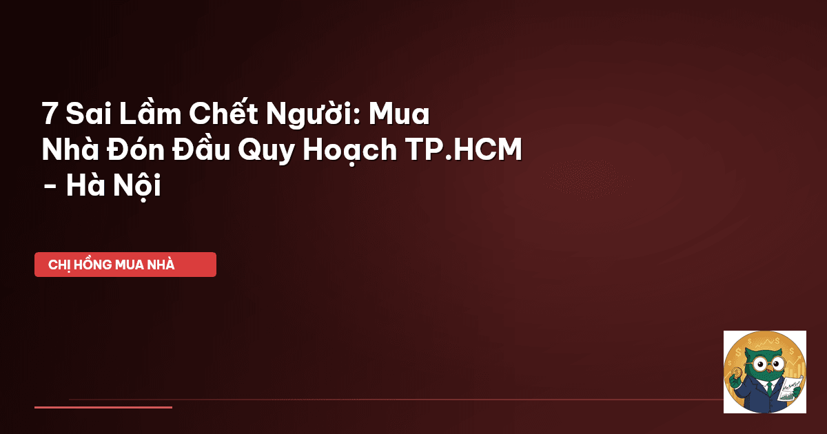 ⏱️ 12 phút đọc · 2354 từ Giới Thiệu Chào cả nhà Cú Thông Thái! Chị Hồng biết là bây giờ, rất nhiều gia đình mình đang rục rịch ý định mua nhà đón đầu quy hoạch ở TP.HCM và Hà Nội, đặc biệt là khi năm 2026 cận kề với hàng loạt thay đổi. Ai mà chẳng muốn sở hữu một căn nhà, miếng đất ở vị trí 'kim cương' khi quy hoạch mới được duyệt phải không? Nhưng mà các mẹ, các bố ơi, chính trong những lúc 'sốt sắng' như vậy, rủi ro lại càng cao đấy! Thời điểm này, TP.HCM và Hà Nội đang bước vào giai đoạn điều…