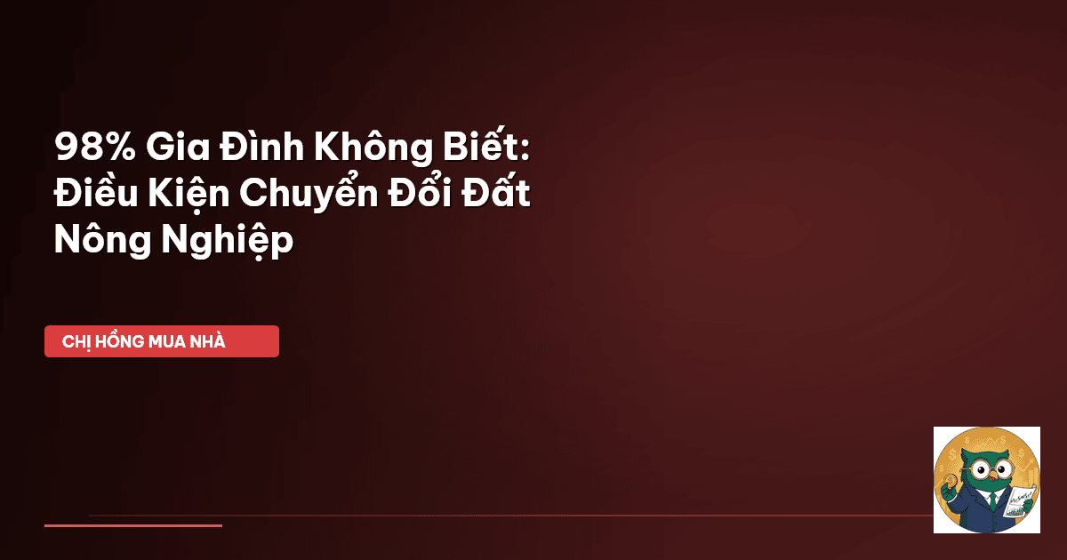 ⏱️ 12 phút đọc · 2237 từ Giới Thiệu: Đừng Để Giấc Mơ An Cư Tan Vỡ Vì Thiếu Hiểu Biết! Chào cả nhà Cú Thông Thái! Chị Hồng lại lên sóng đây. Mấy nay chị nhận được nhiều câu hỏi lắm, nào là: "Chị Hồng ơi, em có miếng đất vườn ông bà cho, giờ muốn chuyển thành đất thổ cư xây nhà cho con cái ra ở riêng có được không?" hay "Em thấy nhiều người mua đất nông nghiệp giá rẻ rồi tính chuyển lên đất ở, có dễ không chị?" Nghe thì có vẻ đơn giản, nhưng thực tế, hành trình chuyển đổi đất n…