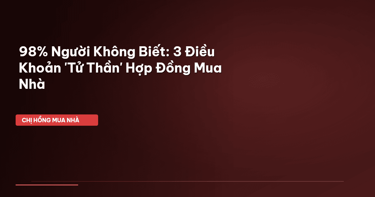 ⏱️ 11 phút đọc · 2171 từ Chào cả nhà mình, Chị Hồng đây! Hôm nay Cú Thông Thái có gì nóng hổi nè? Làm mẹ bỉm ai cũng mong muốn có căn nhà để an cư lạc nghiệp cho gia đình, đúng không cả nhà? Cảm giác được dọn về ngôi nhà của riêng mình, tự tay sắp xếp từng góc nhỏ, nó cứ gọi là sung sướng, mãn nguyện lắm ấy. Nhưng mà nè, giữa bao nhiêu sự phấn khích đó, có một 'chi tiết' mà nhiều người cứ vội vàng bỏ qua, đến lúc 'lỡ làng' rồi mới ôm đầu tiếc nuối. Đó chính là cái hợp đồng mua bán nhà đấy cả nhà…