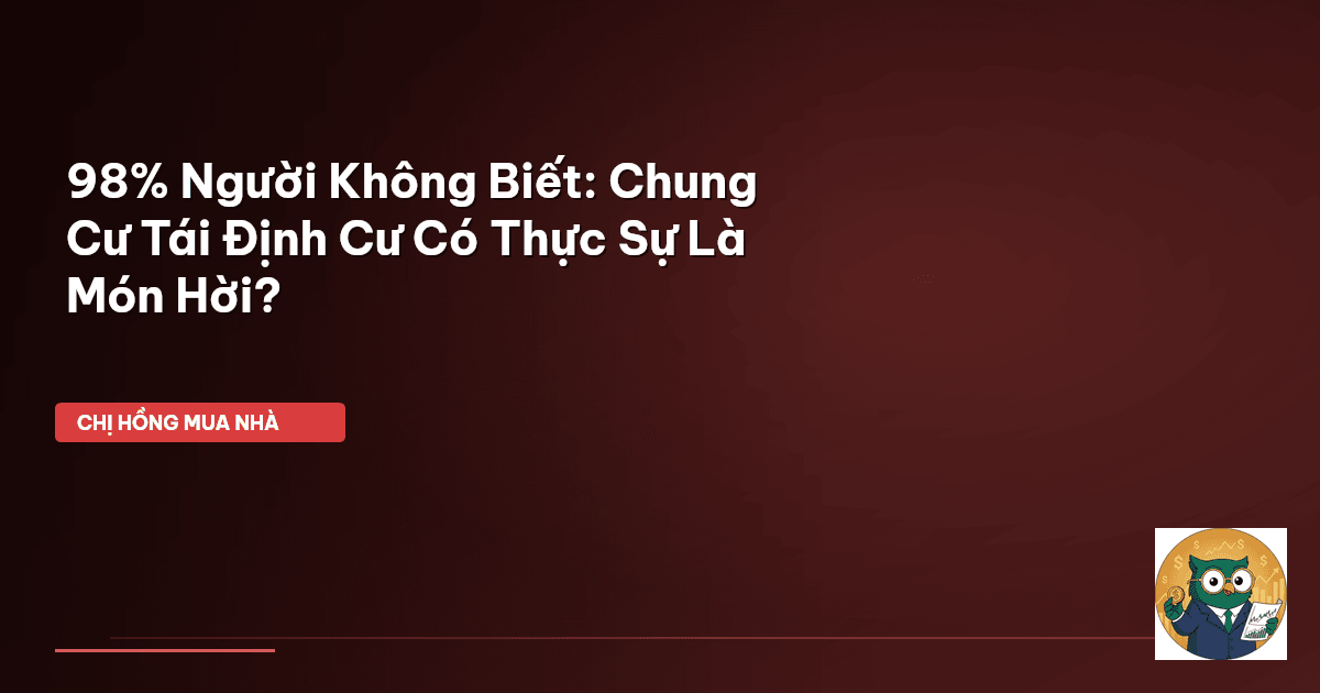 ⏱️ 13 phút đọc · 2545 từ Giới Thiệu: Chung Cư Tái Định Cư — Mảnh Ghép Xám Xịt Trong Giấc Mơ An Cư Chào cả nhà Cú Thông Thái! Chị Hồng biết là dạo này, chuyện nhà cửa cứ nóng hổi như nồi lẩu thái buổi tối Sài Gòn vậy đó. Đặc biệt là mấy căn hộ chung cư tái định cư, cứ thi thoảng lại được nhắc đến như một "lối thoát" cho những gia đình thu nhập không quá cao mà vẫn muốn có nhà riêng. Nghe thì có vẻ hấp dẫn lắm, giá thường mềm hơn thị trường, lại còn ở những vị trí đôi khi rất đắc địa, đúng không c…