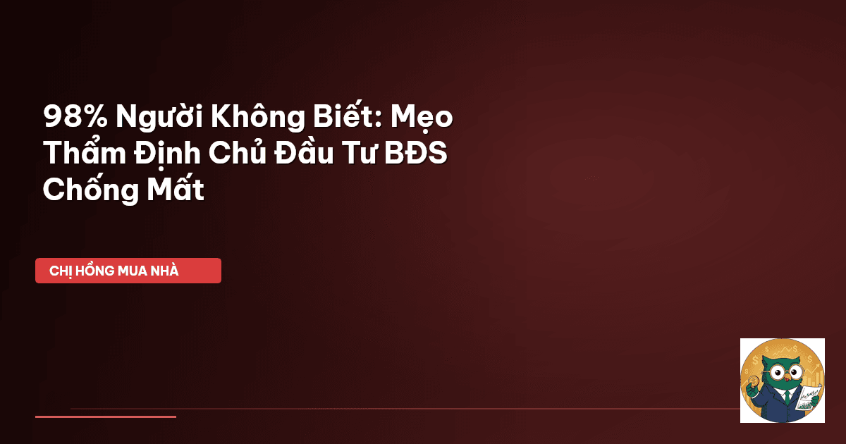 ⏱️ 14 phút đọc · 2732 từ Giới Thiệu: Đừng Để Tiền Mồ Hôi Nước Mắt Biến Mất Cùng Chủ Đầu Tư Ma Chào cả nhà Cú Thông Thái, lại là Chị Hồng BĐS đây! Mấy nay Chị Hồng nhận được nhiều tin nhắn lắm, nào là 'Chị Hồng ơi, em lỡ cọc rồi mà giờ chủ đầu tư im re luôn', hay 'Em mua nhà mà mãi không có sổ, giờ phải làm sao?'. Nghe mà xót ruột hết cả nhà ạ. Thời buổi bây giờ, kiếm được đồng tiền đã khó, giữ tiền còn khó hơn. Đặc biệt là khi quyết định mua một tài sản lớn như căn nhà, mảnh đất, mà lại gặp phải…