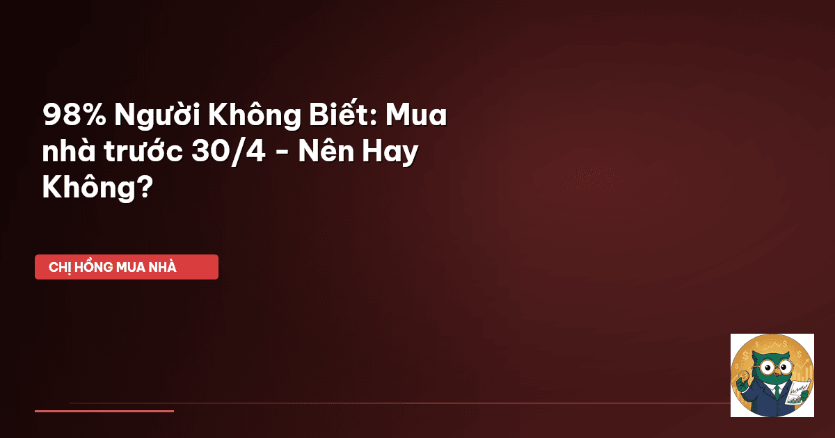 ⏱️ 13 phút đọc · 2520 từ Giới Thiệu: Đừng Để 'Deadline' Mua Nhà Khiến Bạn Vội Vàng Mấy nay, Chị Hồng nghe nhiều mẹ bỉm, nhiều gia đình trẻ cứ rỉ tai nhau chuyện 'xuống tiền' mua nhà trước 30/4. Nào là chủ đầu tư tung ưu đãi, nào là thị trường đang ấm lên, không mua nhanh là lỡ sóng. Nghe thì có vẻ hấp dẫn đó, nhưng mẹ nó có bao giờ tự hỏi: Liệu cái 'deadline' này có phải là thời điểm vàng thực sự cho nhà mình không, hay chỉ là một cái bẫy tâm lý? Thật ra, thị trường bất động sản cũng như cuộc số…