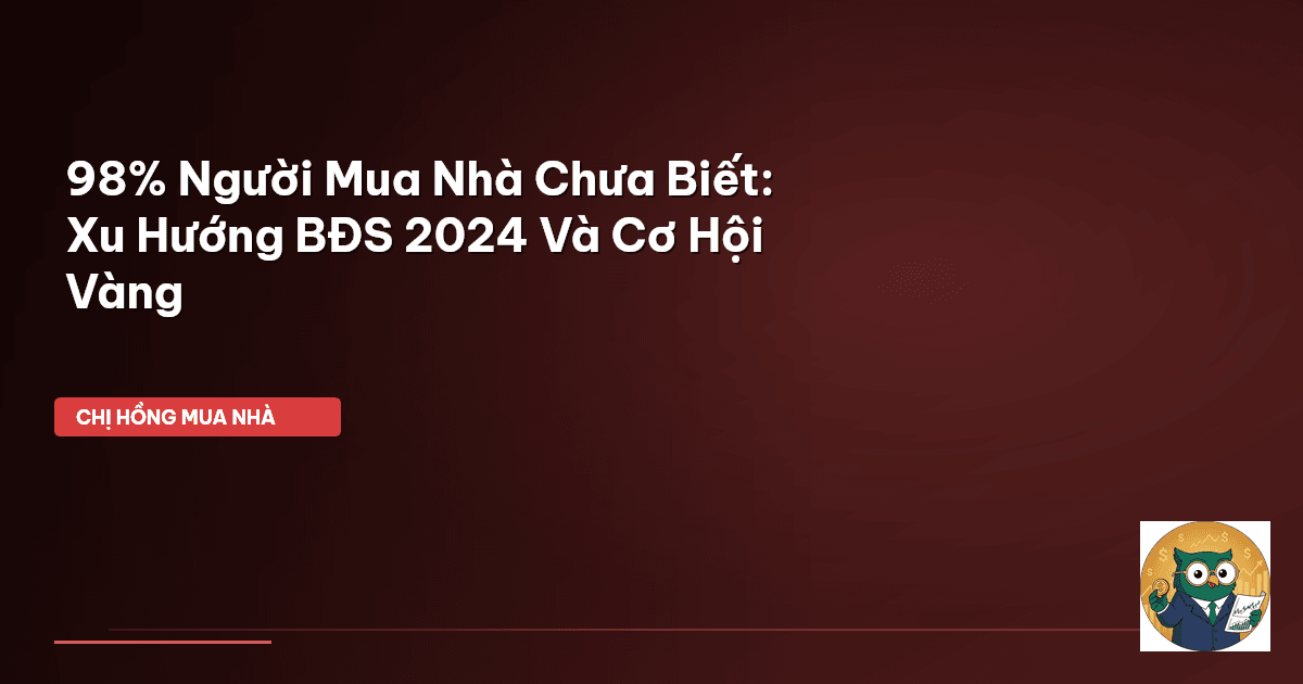 ⏱️ 12 phút đọc · 2289 từ Giới Thiệu: Đừng Hoang Mang, BĐS 2024 Vẫn Có Cửa Sáng! Mấy nay đi chợ hay nói chuyện với mấy chị em mẹ bỉm, Chị Hồng nghe nhiều người than thở về thị trường bất động sản (BĐS) lắm. Nào là giá nhà vẫn cao ngất ngưởng, nào là vay vốn khó khăn, rồi không biết có nên mua nhà lúc này hay không. Nghe xong mà thương đứt ruột gan, vì ai cũng mơ có được căn nhà che mưa che nắng, một tổ ấm an yên cho gia đình mình mà. Đúng là thị trường BĐS Việt Nam mình trải qua một giai đoạn 'th…