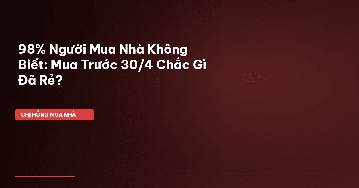 ⏱️ 15 phút đọc · 2890 từ Giới Thiệu: Đừng Để Lời Mời Gọi Ưu Đãi Làm Mờ Mắt Chào cả nhà Cú Thông Thái! Lại là Chị Hồng BĐS đây. Mấy nay đi đâu cũng nghe các em hỏi rần rần chuyện "Mua nhà trước 30/4 có thực sự rẻ hơn không hả chị?" Ngân hàng thì thi nhau đưa ra gói ưu đãi, chủ đầu tư thì giảm giá kịch sàn, làm ai cũng nôn nao, sốt sắng. Dịp lễ lớn sắp tới, ai cũng muốn chốt nhanh để có cái nhà đón Tết hoặc đơn giản là "đầu tư hời" một tí. Nhưng mà các em ơi, đời đâu có "dễ ăn" như vậy! Chị Hồng t…