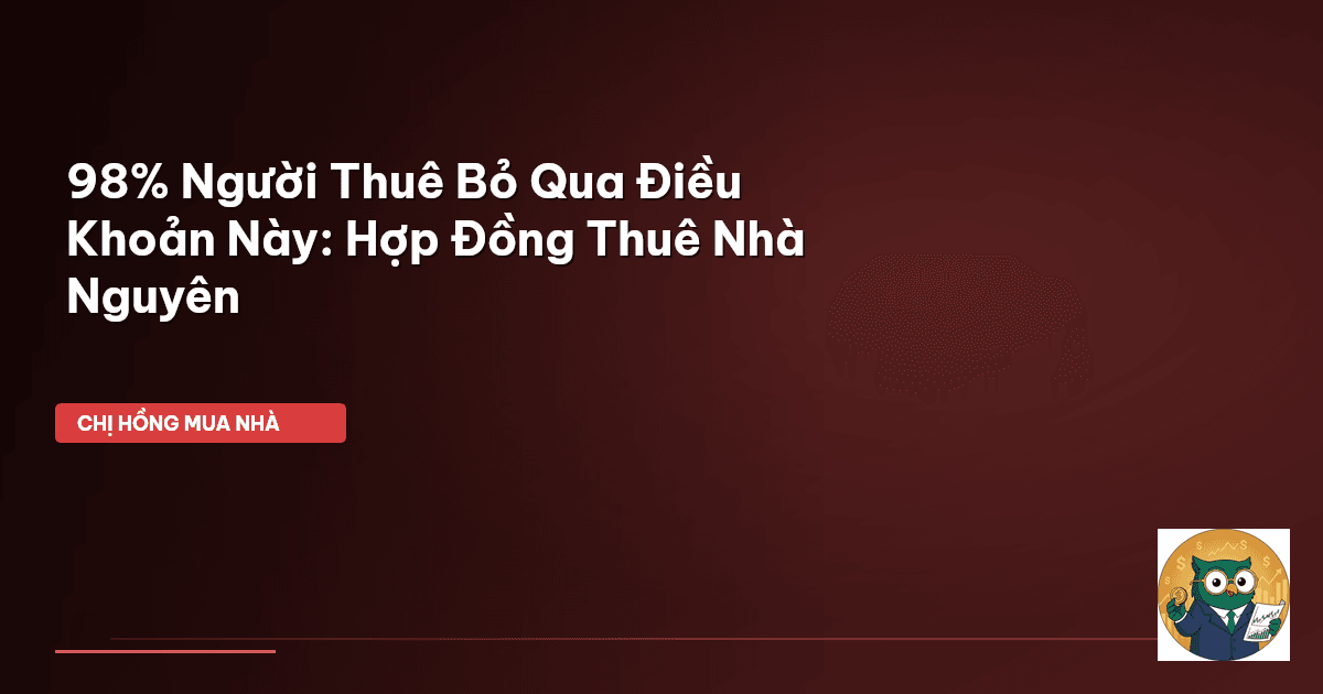 ⏱️ 11 phút đọc · 2161 từ Giới Thiệu: Đừng Để Hợp Đồng Sơ Sài Làm Mất Tiền Oan Cả Nhà Ơi! Chào cả nhà Cú Thông Thái! Chị Hồng biết, cái vụ thuê nhà nguyên căn nghe có vẻ đơn giản, nhưng thực tế lại tiềm ẩn cả "núi" rủi ro nếu mình không cẩn thận. Nhất là cái hợp đồng thuê nhà ấy, cứ nghĩ nó chỉ là tờ giấy thôi, ai ngờ nó lại là cái "phao cứu sinh" hay "cái bẫy" khiến cả nhà mình lao đao. Có bao nhiêu mẹ bỉm, bao nhiêu gia đình đã phải ngậm đắng nuốt cay vì những điều khoản mập mờ, hay những "cái …