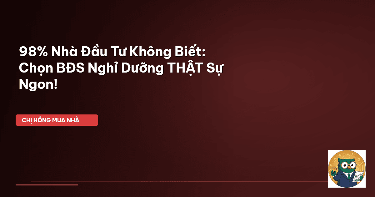 ⏱️ 13 phút đọc · 2600 từ Giới Thiệu: Đừng Để 'Bánh Vẽ' Lừa Khi Chọn BĐS Nghỉ Dưỡng! Chào các mẹ bỉm, các bố nội trợ và những ai đang ấp ủ giấc mơ đầu tư BĐS! Dạo này, Chị Hồng nghe nhiều lắm về việc thị trường BĐS nghỉ dưỡng đang rục rịch "ấm" trở lại. Nào là cam kết lợi nhuận khủng, nào là sở hữu second home tiện ích đủ đường. Nghe thì có vẻ hấp dẫn đấy, nhưng các mẹ có biết, 98% nhà đầu tư không biết cách chọn lọc đâu là dự án "ngon" thật sự giữa muôn vàn lời quảng cáo "đường mật" không? Đúng …