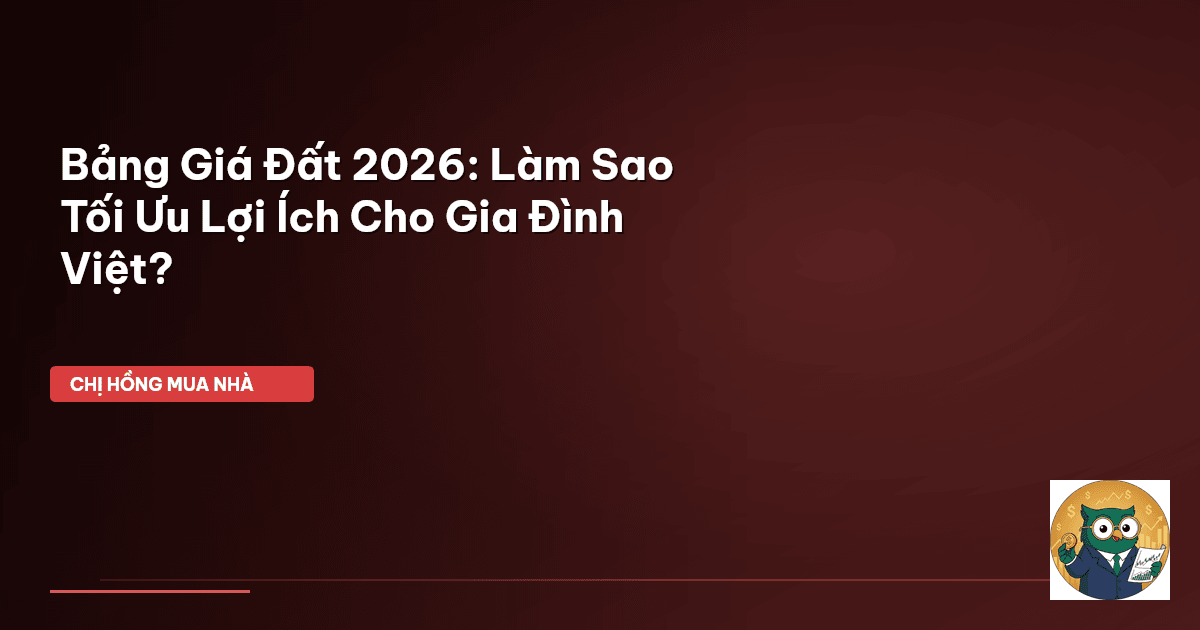 ⏱️ 19 phút đọc · 3687 từ Chào cả nhà Cú Thông Thái, đặc biệt là các mẹ bỉm đang rục rịch ý định mua nhà hay đầu tư đất đai nhé! Chị Hồng biết nhiều mẹ đang đau đầu với chuyện giá cả thị trường cứ nhảy múa, lại còn thêm cái Bảng Giá Đất Nhà Nước sắp áp dụng từ 2026 nữa chứ. Nghe đến đây là thấy lo lo, không biết chi phí rồi thuế má có tăng vọt không, đúng không nào? Hôm nay, Chị Hồng sẽ cùng các mẹ bỉm nhà mình "mổ xẻ" cái Bảng Giá Đất này, để xem nó là cái gì, ảnh hưởng đến ví tiền của mình ra s…