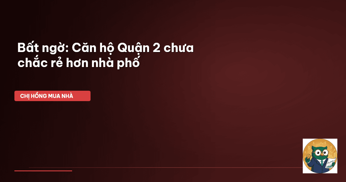 🦉 Cú nhận xét: Điểm mấu chốt ở đây là giá trị nhà phố phụ thuộc rất nhiều vào diện tích đất, vị trí và tiềm năng quy hoạch. Trong khi căn hộ lại định giá chủ yếu theo diện tích sử dụng, tiện ích dự án và uy tín chủ đầu tư. Chính vì vậy, "bất ngờ: căn hộ Quận 2 chưa chắc rẻ hơn nhà phố" hoàn toàn có thể xảy ra khi so sánh các phân khúc khác nhau.