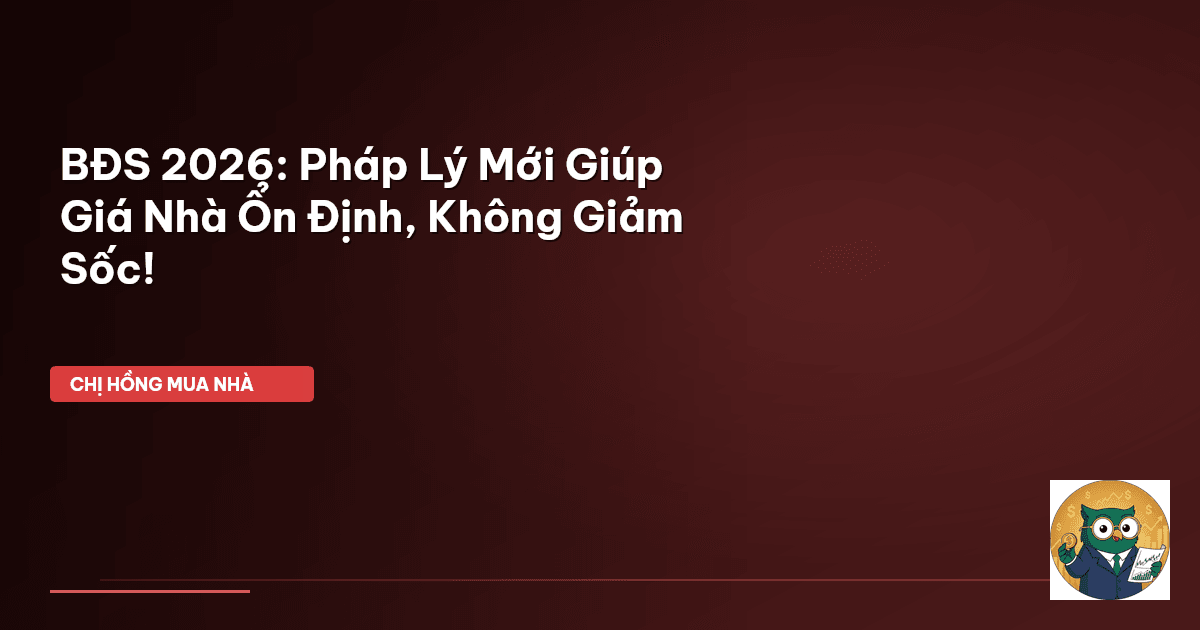 ⏱️ 11 phút đọc · 2148 từ Giới Thiệu: Pháp Lý Mới – Chìa Khóa Cho Thị Trường BĐS Ổn Định! Chào các mẹ, các chị em và các con của Chị Hồng! Dạo này, Chị Hồng nhận được vô vàn câu hỏi kiểu: 'Chị ơi, năm 2026 pháp lý BĐS thay đổi, giá nhà có giảm mạnh không?', 'Em có nên chờ đợi không ạ?', hay 'Chính sách mới này có phải là cơ hội để vợ chồng em mua được căn nhà đầu tiên không?'. Những lo lắng này là hoàn toàn chính đáng, bởi thị trường bất động sản (BĐS) luôn có những biến động khó lường, nhất là k…