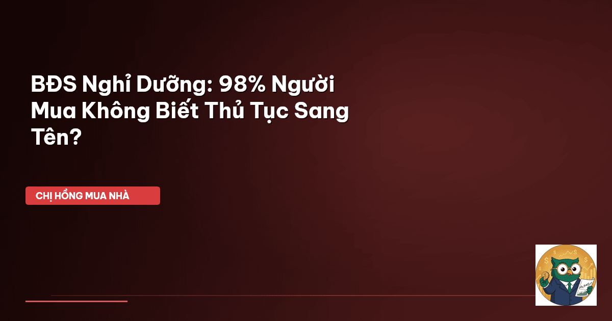 ⏱️ 14 phút đọc · 2648 từ Giới Thiệu: Đừng Để Giấc Mơ Nhà Nghỉ Dưỡng Thành Ác Mộng Thủ Tục! Chào cả nhà! Chị Hồng biết là dạo này nhiều gia đình mình đang ấp ủ giấc mơ về một căn nhà nghỉ dưỡng 'second home' để cuối tuần cả nhà cùng nhau chạy trốn khỏi khói bụi thành phố, hay đơn giản là đầu tư để dòng tiền sinh sôi nảy nở. Nghe thì 'thơm' lắm đúng không? Nhưng mà các mẹ ơi, đời không như là mơ đâu nhé. Giữa cái 'giấc mơ' và 'sự thật' nó là cả một 'hành trình' mang tên thủ tục pháp lý đó. Cứ nghĩ…