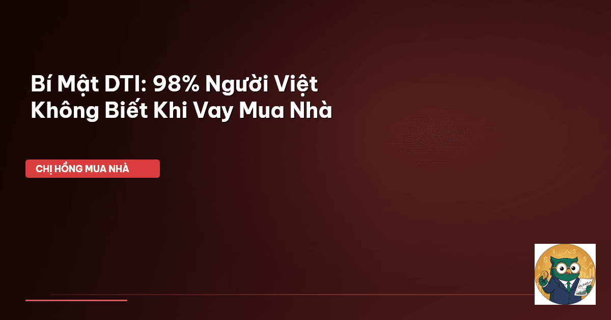 ⏱️ 17 phút đọc · 3294 từ Giới Thiệu: Vay Mua Nhà – Chuyện Của Cả Gia Đình! Chào cả nhà Cú Thông Thái! Chị Hồng BĐS lại lên sóng đây. Mấy nay nhận được nhiều câu hỏi lắm, nào là: "Chị ơi, lương em với chồng tổng cộng 30 triệu, có vay được 2 tỷ mua nhà không?", rồi "Sao em đi hỏi ngân hàng họ cứ lắc đầu hoài à?". Nghe là chị Hồng biết ngay, các mẹ bỉm, các ông bố trẻ nhà mình đang vướng cái cục "DTI" mà không hề hay biết! DTI, hay còn gọi là Tỷ Lệ Nợ trên Thu Nhập (Debt-to-Income Ratio), nghe thì …