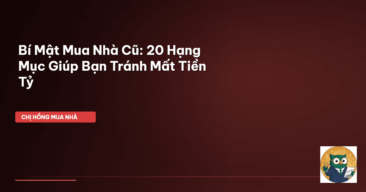 ⏱️ 15 phút đọc · 2885 từ Giới Thiệu: Mua Nhà Cũ – Cánh Cửa Mở Ra Hay Chiếc Hố Đen Tài Chính? Chào cả nhà Cú Thông Thái, Chị Hồng đây! Dạo này, chị thấy nhiều mẹ bỉm, nhiều gia đình trẻ cứ than thở chuyện giá nhà mới cao quá trời. Đúng là để có một tổ ấm tử tế ở thành phố lớn bây giờ không phải chuyện dễ dàng gì. Thế là nhiều người bắt đầu nghĩ đến phương án mua nhà cũ, vừa túi tiền hơn lại có thể tự tay sửa sang theo ý mình. Nghe thì có vẻ hời lắm đúng không? Nhưng mà, chị Hồng phải cảnh báo nga…