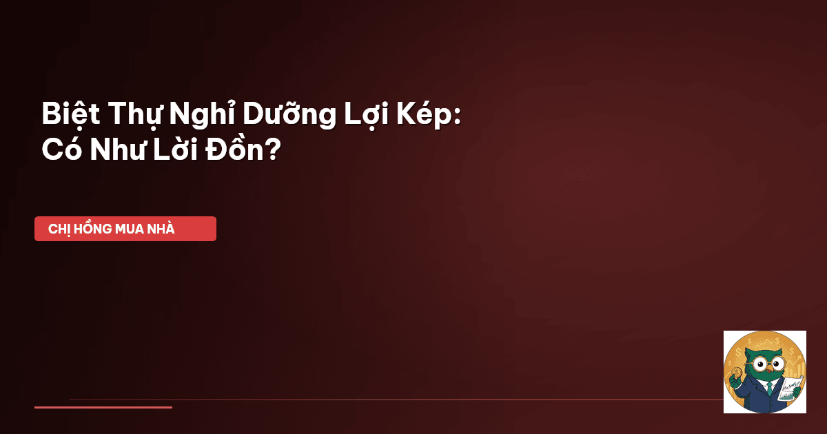 ⏱️ 12 phút đọc · 2368 từ Giới Thiệu: Đừng Để 'Lợi Nhuận Kép' Ru Ngủ Ước Mơ Chào cả nhà Cú Thông Thái! Chị Hồng biết là dạo này, cái cụm từ "biệt thự nghỉ dưỡng lợi nhuận kép" cứ bay lượn trên các mặt báo, trên các buổi giới thiệu dự án, khiến bao nhiêu gia đình mình, bao nhiêu nhà đầu tư nhỏ lẻ phải xốn xang. Nghe lời đường mật lắm: vừa có chỗ cho gia đình nghỉ dưỡng cuối tuần, vừa cho thuê kiếm lời, rồi vài năm nữa giá đất lên, bán lại lại lời to. Tiền đẻ ra tiền, mà lại còn được xả hơi nữa chứ…