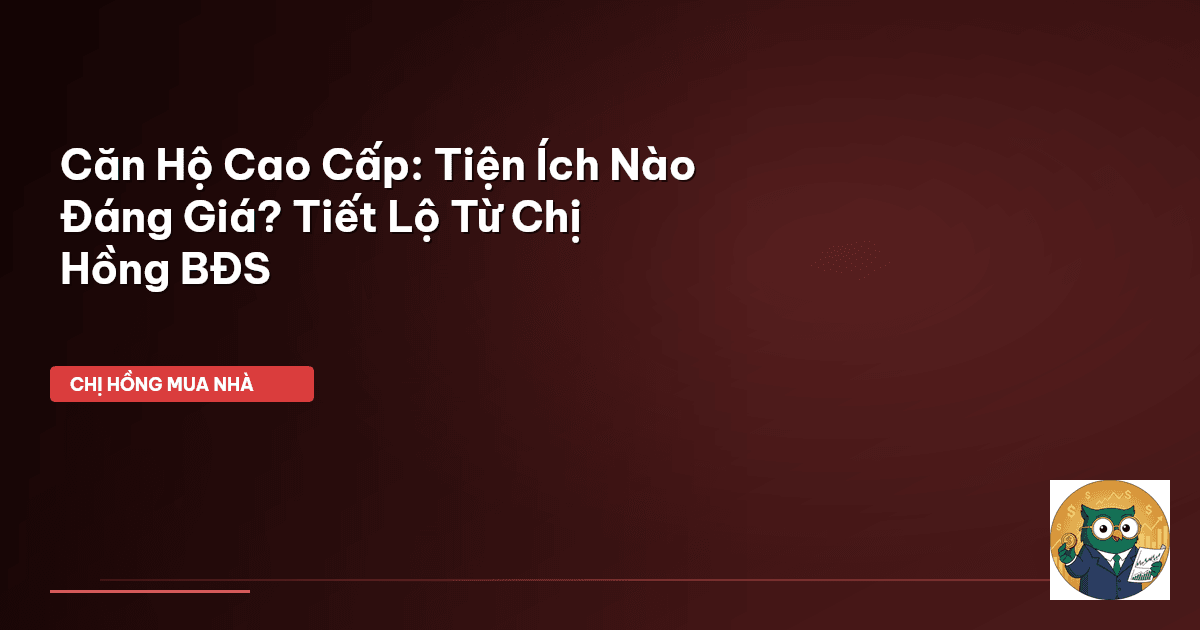 ⏱️ 13 phút đọc · 2472 từ Giới Thiệu: Đừng Để Tiện Ích Hào Nhoáng "Móc Túi" Mẹ Bỉm! Chào cả nhà Cú Thông Thái của Chị Hồng nhé! Mấy nay Chị Hồng nhận được nhiều câu hỏi về căn hộ cao cấp quá. Ai cũng bảo: "Chị Hồng ơi, em thấy căn hộ nào cũng quảng cáo đủ thứ tiện ích hoành tráng. Nào là hồ bơi vô cực, gym xông hơi, rồi khu vui chơi trẻ em siêu to khổng lồ. Nhưng em sợ mua về lại phí tiền, không dùng đến thì sao?". Ôi giời ơi, đúng nỗi đau của mẹ bỉm chúng mình luôn, đúng không nào? Đồng tiền kiế…