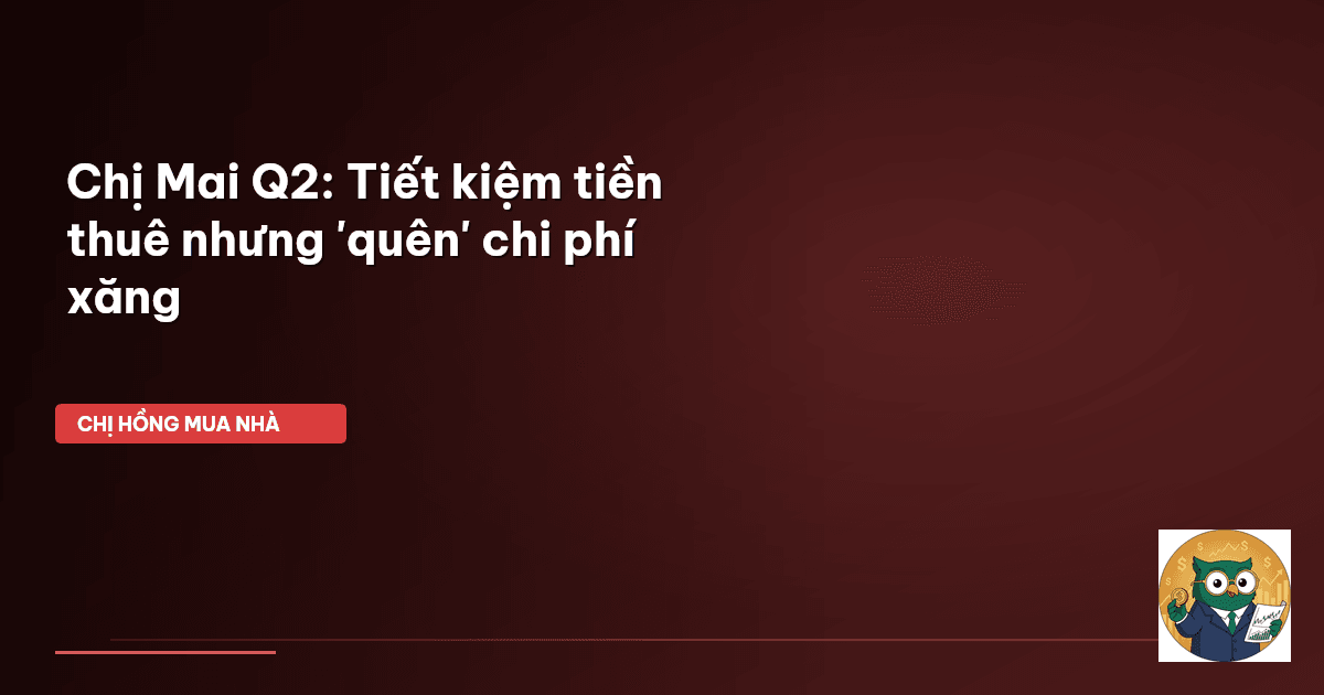 Hôm nay, Chị Hồng BĐS sẽ cùng các mẹ bỉm "mổ xẻ" câu chuyện thuê nhà ở Quận 2, không chỉ nhìn vào mỗi tiền thuê, mà còn cả những chi phí "ẩn" như xăng dầu. Chúng ta sẽ cùng xem, liệu việc tiết kiệm được vài triệu tiền thuê nhà có thực sự hiệu quả khi phải "đổ" hết vào việc đi lại hay không. Bạn có thể tự kiểm tra ngay xem quyết định thuê hay mua của mình có đang tối ưu chi phí tổng thể không nhé.
