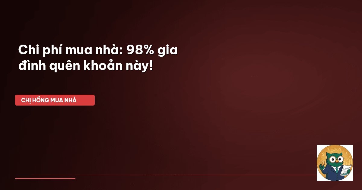 ⏱️ 11 phút đọc · 2098 từ Giấc mơ an cư: Đừng để chi phí "ẩn" biến thành "cơn ác mộng"! Chào cả nhà Cú Thông Thái! Lại là Chị Hồng BĐS đây. Dạo này chị thấy nhiều gia đình trẻ hừng hực khí thế đi tìm nhà, đặc biệt là khi lãi suất ngân hàng đang có dấu hiệu hạ nhiệt. Ai cũng mong có tổ ấm riêng, đúng không các mẹ bỉm, các ông bố bận rộn? Nhưng mà, có một sự thật phũ phàng mà 98% người đi mua nhà lần đầu đều bỏ quên , đó là: ngoài tiền cọc, tiền vay, còn ti tỉ thứ chi phí phát sinh khác mà nếu khôn…