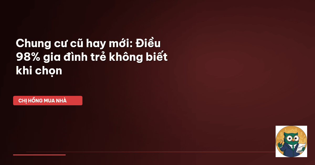 Chào mấy mẹ bỉm, chào ba mẹ bận rộn! Chị Hồng biết là không ít gia đình mình đang đau đầu với một câu hỏi muôn thuở: Nên mua chung cư cũ hay ráng thêm tí nữa sắm chung cư mới tinh tươm cho con cái có chỗ an cư lạc nghiệp? Đặc biệt là khi con còn nhỏ, nhu cầu về môi trường sống, tiện ích, và sự an toàn lại càng được đặt lên hàng đầu. Làm sao để chọn được căn nhà vừa túi tiền, vừa tiện lợi cho con đi học, lại vừa đảm bảo pháp lý rõ ràng?
