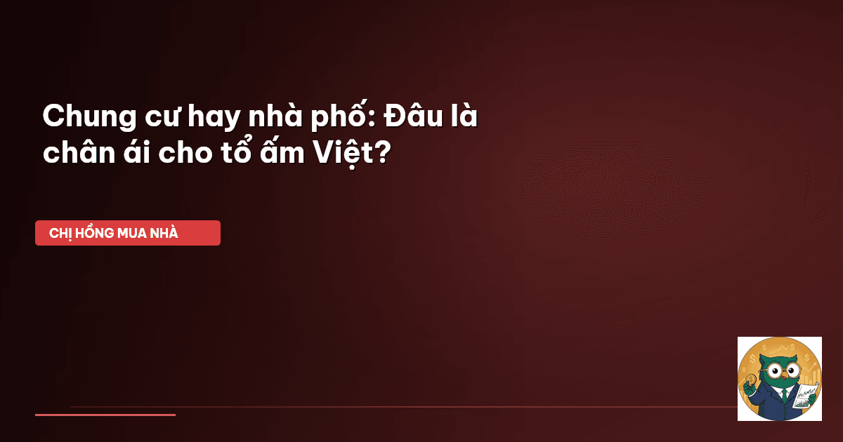 ⏱️ 14 phút đọc · 2651 từ Chào cả nhà mình, lại là Chị Hồng BĐS đây! Mấy nay, Chị Hồng nhận được nhiều câu hỏi từ các mẹ bỉm, các cặp vợ chồng trẻ. Ai cũng đau đáu một nỗi lo chung: 'Chị Hồng ơi, tụi em nên thuê chung cư cho tiện hay ráng gom góp mua một căn nhà phố cho chắc ăn?'. Ôi, cái câu hỏi này đúng là nỗi niềm của biết bao nhiêu gia đình Việt mình, nhất là khi giá nhà đất cứ nhảy múa theo từng quý, còn tiền lương thì cứ dậm chân tại chỗ, đúng không cả nhà? Hôm nay, Chị Hồng sẽ cùng cả nhà …