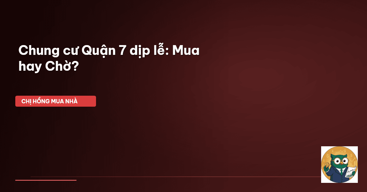 ⏱️ 13 phút đọc · 2519 từ Giới Thiệu: Sốt Sắng Mua Nhà Dịp Lễ – Nên Hay Không Nên? Chào cả nhà Cú Thông Thái! Chị Hồng BĐS lại ghé qua tâm sự chuyện nhà cửa với các mẹ bỉm, các anh chồng đang đau đáu tìm chốn an cư lạc nghiệp đây. Cứ mỗi dịp lễ, thị trường bất động sản lại rộn ràng, đặc biệt là ở những khu vực 'hot' như Quận 7. Những lời chào mời giảm giá, ưu đãi hấp dẫn cứ bay vèo vèo qua tai, khiến nhiều người cứ đứng ngồi không yên, không biết nên chốt ngay hay chờ đợi thêm. Tâm lý sợ bỏ lỡ cơ…