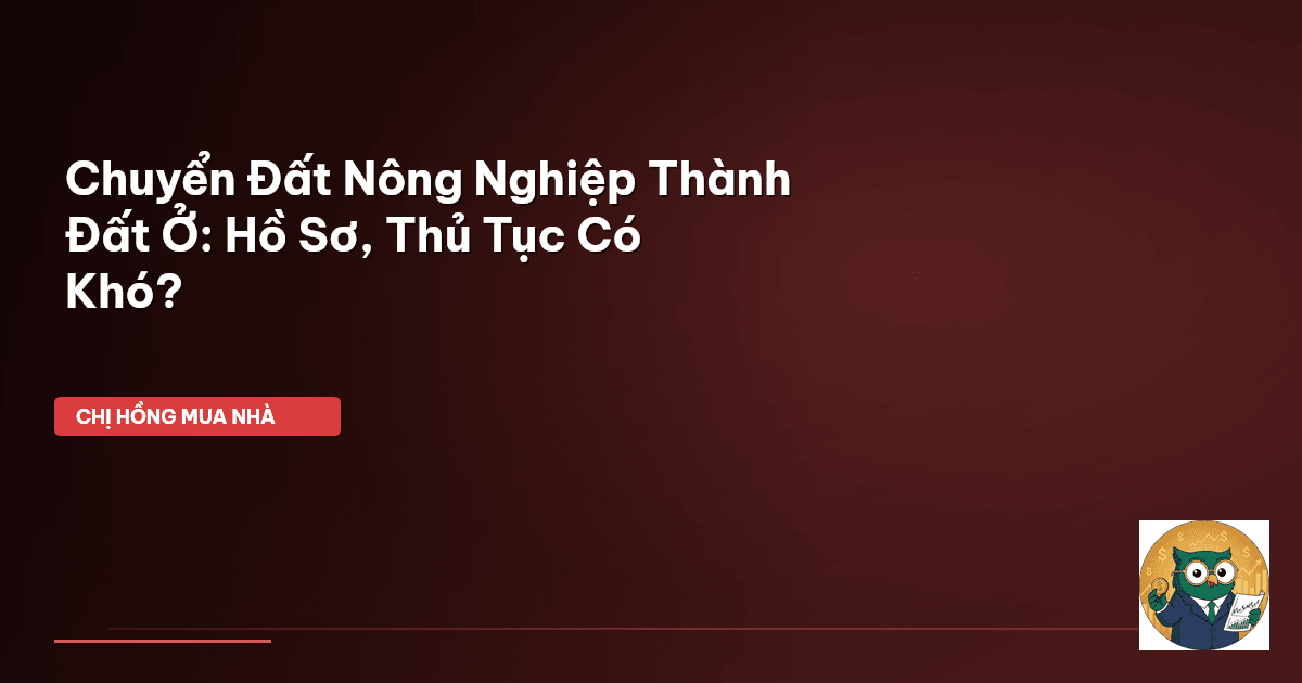 ⏱️ 11 phút đọc · 2002 từ Giới Thiệu: Đất Nông Nghiệp Thành Đất Ở — 'Bài Toán' Của Nhiều Gia Đình Mấy chị em nhà mình, có ai đang 'đau đáu' với mảnh đất nông nghiệp ông bà để lại mà muốn chuyển thành đất ở không? Chị Hồng biết là nhiều gia đình đang gặp bài toán này lắm đó. Cứ nghĩ mà xem, đất nông nghiệp thì giá trị thấp, lại không được xây dựng kiên cố. Còn nếu mà chuyển được lên đất ở, thì giá trị tăng vọt, tha hồ xây nhà cửa, làm của để dành cho con cái, hoặc bán ra cũng được một khoản kha kh…