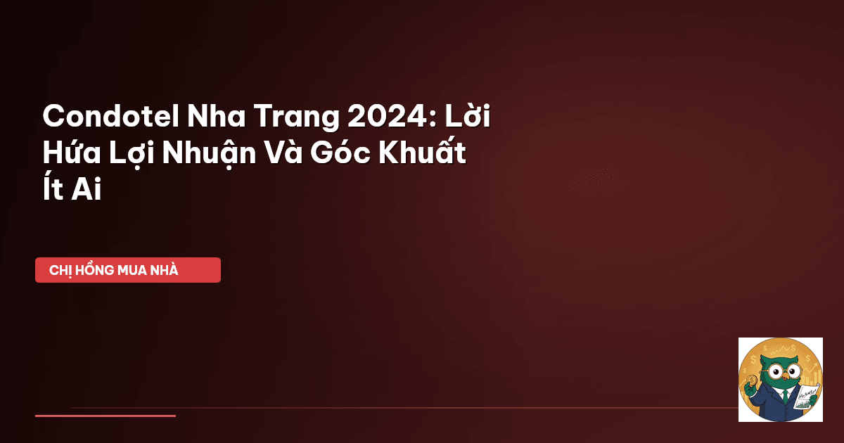 ⏱️ 12 phút đọc · 2234 từ Giới Thiệu: Đừng Để Tiền Mồ Hôi Nước Mắt Bốc Hơi Theo Lời Hứa Condotel Chào cả nhà mình, lại là Chị Hồng BĐS đây! Mấy hôm nay, nhiều mẹ bỉm inbox hỏi Chị Hồng về chuyện đầu tư condotel ở Nha Trang quá trời luôn. Nghe đâu thị trường bắt đầu "rục rịch" trở lại sau bao năm "ngủ đông", rồi nào là "cơ hội vàng", "giá hời". Nghe mà thấy nôn nao, đúng không các mẹ? Ai mà chẳng muốn tiền đẻ ra tiền, nhất là khi mình đang phải cân đối chi tiêu đủ thứ, từ tiền học cho con, tiền ch…