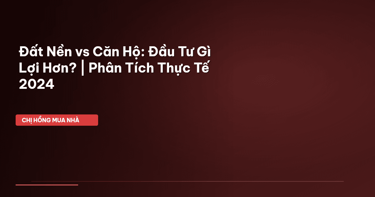 ⏱️ 15 phút đọc · 2863 từ Giới Thiệu: Đất Nền Hay Căn Hộ: Đâu Là Kênh Đầu Tư "Hái Ra Tiền" Cho Gia Đình Mình? Chị em mình ơi, có phải dạo này đi đâu cũng nghe chuyện đất nền, rồi căn hộ không ngừng tăng giá đúng không nào? Ai cũng ráo riết hỏi: "Giờ nên mua đất nền hay căn hộ để đầu tư đây Chị Hồng ơi? Sợ bỏ lỡ cơ hội quá!" Cú biết, nỗi lo này không của riêng ai, nhất là các gia đình trẻ đang tích góp từng đồng để có một chốn an cư hoặc tìm kiếm kênh đầu tư sinh lời. Nhà cửa đất đai luôn là tài s…