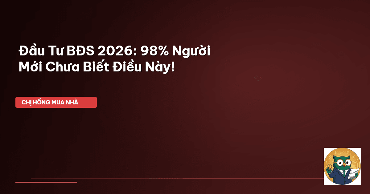 ⏱️ 15 phút đọc · 2997 từ Chào Mấy Mẹ Bỉm, Các Chị Em Vốn Ít Đang Mơ Về BĐS Năm 2026! Chào cả nhà Cú Thông Thái! Lại là Chị Hồng BĐS đây. Mấy nay nhận được quá trời tin nhắn hỏi Chị Hồng ơi, em lương ba cọc ba đồng, vợ chồng gom mãi mới được chút đỉnh, liệu có cửa nào cho người mới toanh như em 'nhảy' vào thị trường bất động sản năm 2026 không? Em sợ lắm, thấy người ta mua được đất, được nhà mà mình cứ đứng ngoài. Nghe vậy là Chị Hồng biết liền, mấy chị em mình đang loay hoay với câu hỏi 'đầu tư …