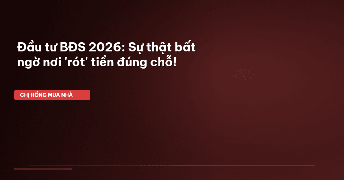 ⏱️ 13 phút đọc · 2479 từ Giới Thiệu: Đừng Nghe Lời Đồn, Hãy Tự Mình Soi Chiếu Cơ Hội BĐS 2026! Chào cả nhà Cú Thông Thái! Chị Hồng BĐS đây. Mấy nay nhiều mẹ bỉm, các anh chị công sở cứ hỏi Chị Hồng "Năm 2026 này, nên đầu tư BĐS ở đâu thì hốt bạc?" Nghe mà thấy nôn nao quá chừng! Ai cũng muốn kiếm lời, ai cũng muốn tài sản sinh sôi nảy nở, đúng không nè? Mà nói thật, thị trường BĐS giống như một khu rừng vậy đó, có cây cổ thụ sừng sững, có cây non đang nhú mầm. Đôi khi, mọi người cứ mải mê chạy t…