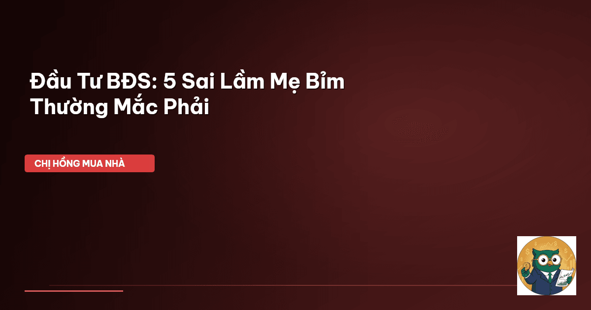 ⏱️ 14 phút đọc · 2725 từ Giới Thiệu: Mẹ Bỉm Ơi, Cẩn Thận Với Lời Đồn Đầu Tư BĐS Nhé! Chào cả nhà Cú Thông Thái, Chị Hồng lại lên sóng đây! Dạo này đi đâu cũng nghe các mẹ bỉm, các chị em xôn xao chuyện đầu tư bất động sản (BĐS). Nào là "đầu tư đất là thắng chắc", "mua nhà lúc nào cũng lời", rồi "cứ vay ngân hàng tối đa mà mua, sau này BĐS lên giá là trả hết lãi ngay". Nghe thì có vẻ bùi tai, hấp dẫn lắm đúng không các mẹ? Nhưng mà Chị Hồng phải nói thật, nếu cứ tin răm rắp những lời đồn thổi ấy …