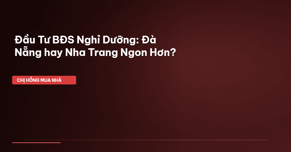 ⏱️ 11 phút đọc · 2164 từ Giới Thiệu Chào cả nhà mình! Lại là Chị Hồng BĐS đây. Mấy nay chị nhận được nhiều câu hỏi từ các mẹ bỉm, các anh chị văn phòng về chuyện đầu tư bất động sản nghỉ dưỡng. Ai cũng xuýt xoa trước vẻ đẹp của Đà Nẵng, Nha Trang, nhưng rồi lại đau đầu không biết nên "đổ tiền" vào đâu để sinh lời tốt nhất, vừa an toàn lại vừa có của ăn của để cho con cái sau này. Thật ra, việc chọn giữa Đà Nẵng và Nha Trang để đầu tư không chỉ đơn thuần là nhìn vào cảnh đẹp hay số lượng khách du…