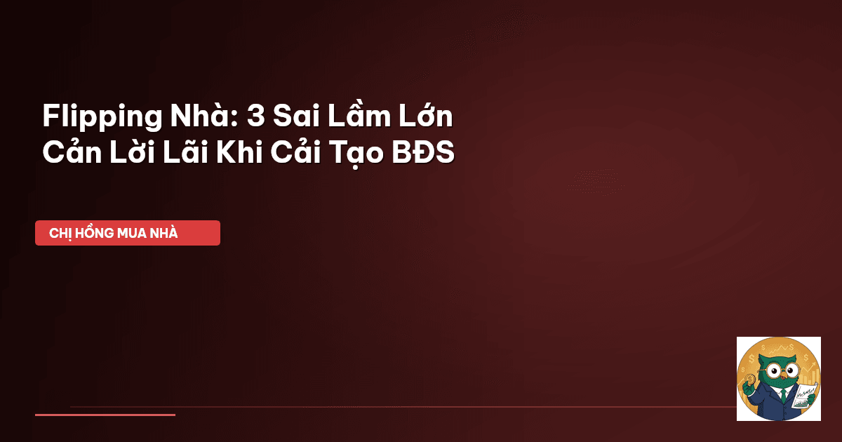 ⏱️ 13 phút đọc · 2433 từ Giới Thiệu: Từ Nhà Cũ 'Nát' Đến 'Biệt Thự' Lợi Nhuận Khủng Chào cả nhà Cú Thông Thái! Chị Hồng đây. Hôm nay mình ngồi lại tám chuyện về một chủ đề mà mấy mẹ bỉm mình hay hỏi nè: flipping nhà . Nghe thì có vẻ hấp dẫn, kiểu mua một căn nhà cũ nát, bỏ chút công sức sửa sang rồi bán lại với giá cao hơn, kiếm lời nhanh gọn lẹ. Giống như biến một cô bé lọ lem thành nàng công chúa ấy. Nhưng mà mấy mẹ ơi, ở đời có cái gì dễ ăn đâu, đúng không? Trên thực tế, để "biến hình" một că…