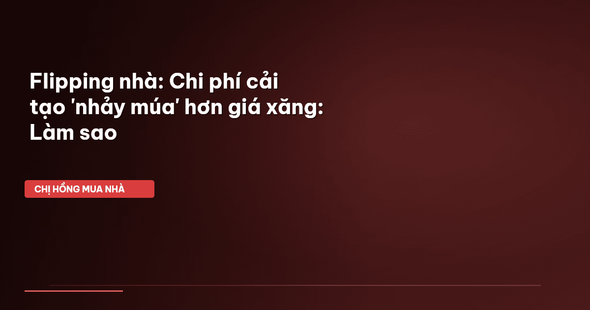 ⏱️ 11 phút đọc · 2112 từ Giới Thiệu: Flipping Nhà Nghe Hay Ho, Nhưng Tiền Cải Tạo Có 'Đốt Lời' Không? Chào cả nhà Cú Thông Thái! Chị Hồng biết nhiều mẹ bỉm, nhiều anh chị em văn phòng đang ấp ủ giấc mơ 'lướt sóng' hay còn gọi là flipping nhà đúng không nào? Nghe thì hấp dẫn lắm, mua căn nhà cũ, sửa sang tí rồi bán lại kiếm lời nhanh gọn. Nhưng các cụ nhà mình vẫn nói 'của rẻ là của ôi' mà, mấy căn nhà cũ thường đi kèm với những khoản chi phí cải tạo 'trời ơi đất hỡi' không ngờ tới đó nha! Các co…