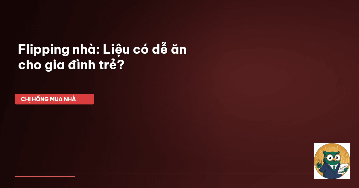 ⏱️ 10 phút đọc · 1928 từ Giới Thiệu: Flipping nhà - Cơn sốt hay cơn ác mộng của mẹ bỉm? Mấy đứa ơi, dạo này Chị Hồng thấy trên mạng, trên các hội nhóm, đâu đâu cũng rần rần chuyện "flipping nhà", mua rẻ sửa bán đắt lời bạc tỷ. Đặc biệt là mấy gia đình trẻ, vốn ít mà khao khát có tổ ấm riêng rồi lại còn muốn làm giàu nhanh, thấy ai khoe lời là cũng "nóng ruột" lắm. Chị Hồng biết, ai cũng mong muốn có được tài sản vững chắc cho con cái, cho tương lai gia đình mình. Nhưng liệu cái "miếng bánh" flip…