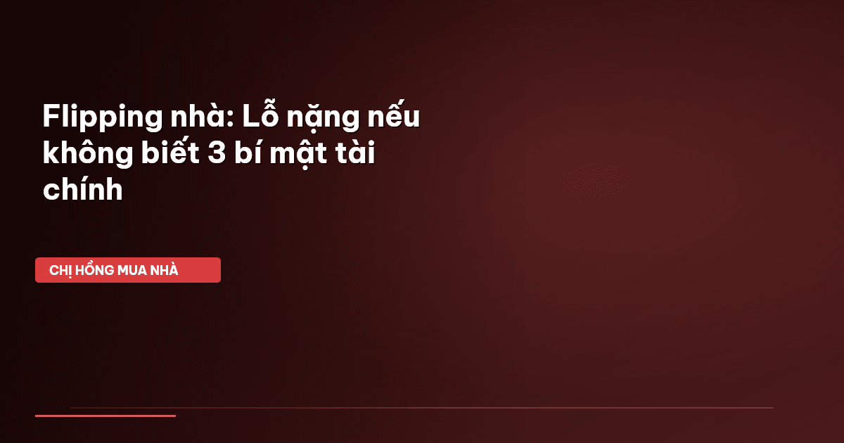 ⏱️ 13 phút đọc · 2463 từ Giới Thiệu: Đừng Để Giấc Mơ Flipping Thành Ác Mộng Tài Chính Chào cả nhà Cú Thông Thái! Chị Hồng biết là dạo này, trên mạng hay ngoài quán trà đá, ai cũng râm ran chuyện "flipping nhà" . Nghe thì có vẻ màu hồng lắm, mua một căn nhà cũ cũ, sửa sang chút đỉnh rồi bán lại lời vài trăm triệu, thậm chí cả tỉ bạc trong vài tháng. Nghe "ngon" vậy ai mà chẳng ham đúng không? Nhưng mà cả nhà ơi, đời không như là mơ đâu nha. Đúng là có nhiều người đã phất lên nhờ flipping nhà thật…