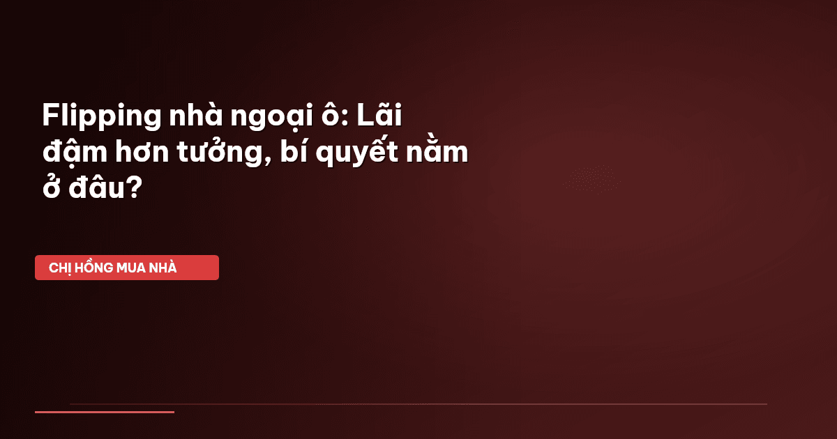 Chào cả nhà, Chị Hồng BĐS đây! Mấy hôm nay, chị em mình rỉ tai nhau về chuyện "flipping nhà" nhiều lắm. Nghe có vẻ to tát, kiểu phải đại gia mới chơi được đúng không? Nhưng thật ra, không hề nha! Đặc biệt là ở các khu vực ngoại ô, cơ hội cho người vốn không quá dày vẫn cứ là mênh mông.