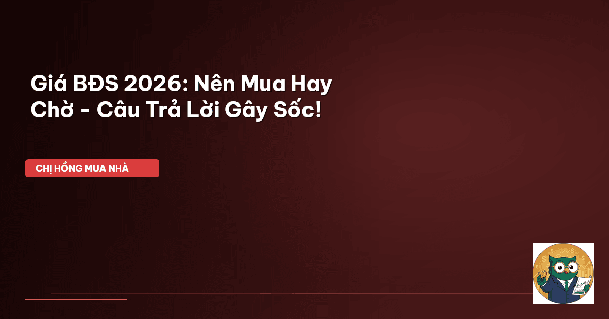 ⏱️ 12 phút đọc · 2296 từ Giới Thiệu: Mua Hay Chờ – Nỗi Lo Chung Của Các Gia Đình! Chị em mình ơi, có phải dạo này đi đâu cũng nghe câu hỏi này không: "Giá BĐS 2026 sẽ thế nào, nên mua nhà hay chờ đợi thêm?". Chị Hồng hiểu mà, mua nhà là chuyện lớn của cả đời người, liên quan đến biết bao nhiêu mồ hôi công sức, bao nhiêu kế hoạch tương lai của cả gia đình. Ai cũng muốn mua được giá tốt, vị trí ưng ý, pháp lý chuẩn chỉnh. Thị trường bất động sản Việt Nam mình á, nó cứ như một cô gái đỏng đảnh vậy …