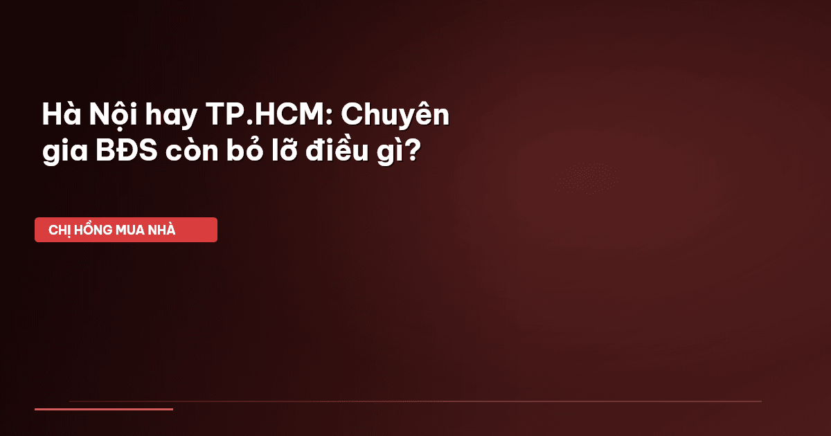 ⏱️ 11 phút đọc · 2067 từ Giới thiệu: Hà Nội hay TP.HCM, đâu mới là 'mỏ vàng' thực sự? Mấy chị em mình làm mẹ bỉm, hay các anh chồng cứ hay hỏi Chị Hồng: 'Giờ này nên đầu tư BĐS ở Hà Nội hay Sài Gòn hả Chị Hồng ơi? Nghe nói chỗ này đang hot, chỗ kia lên giá ầm ầm'. Nghe thì ai cũng muốn kiếm lời nhanh, nhưng thực tế thị trường nó đâu có đơn giản vậy đâu các mẹ. Nhiều khi, ngay cả các 'chuyên gia' lâu năm cũng dễ mắc kẹt vào những con số tăng trưởng bề mặt mà quên đi bức tranh toàn cảnh. Mỗi thành…
