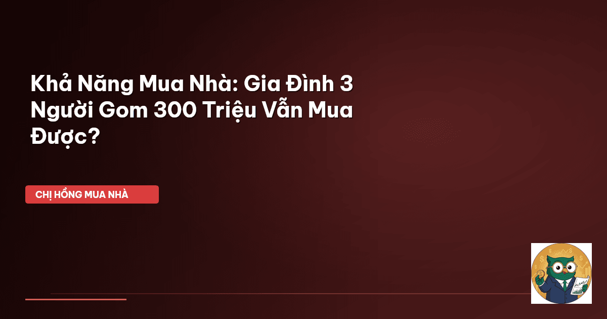 ⏱️ 13 phút đọc · 2554 từ Giới Thiệu: Ước Mơ An Cư – Không Chỉ Là Giấc Mơ! Chào cả nhà Cú Thông Thái! Chị Hồng biết là trong số chúng ta, không ít mẹ bỉm, bố bỉm vẫn đang trăn trở câu chuyện "An cư lập nghiệp" đúng không? Nhất là khi nhìn giá nhà cứ tăng vù vù, rồi lãi suất ngân hàng cứ nhảy múa, nhiều khi mình nản lắm chứ. Có gia đình hai vợ chồng cố gắng lắm mới gom góp được tầm 300 triệu tiền mặt, nhưng rồi lại thở dài, băn khoăn không biết với số tiền ít ỏi đó, liệu có thể mua được một tổ ấm …