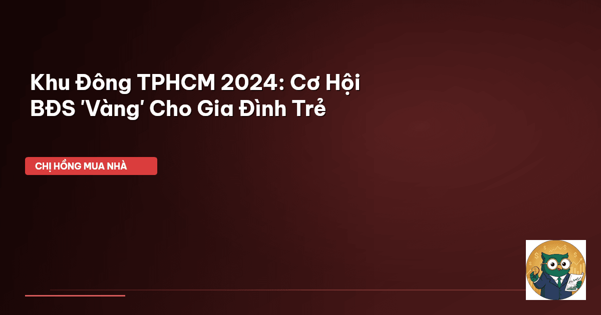 ⏱️ 11 phút đọc · 2047 từ Giới Thiệu: Khu Đông TP.HCM Vẫn Còn Là "Mỏ Vàng" Cho Gia Đình Mình? Mấy nay, Chị Hồng nhận được nhiều câu hỏi từ các mẹ bỉm, các cặp vợ chồng trẻ. Ai cũng trăn trở: "Chị ơi, Khu Đông TP.HCM (tức Thành phố Thủ Đức bây giờ) nóng quá rồi, giá cả thì trên trời, tụi em liệu còn cơ hội nào để mua nhà hay đầu tư không?". Ai cũng nghĩ cơ hội vàng đã trôi qua, rằng bây giờ chỉ có những nhà đầu tư lớn, tiền tỷ mới chen chân vào được thôi. Nhưng mà các mẹ ơi, đừng vội nản lòng nha!…