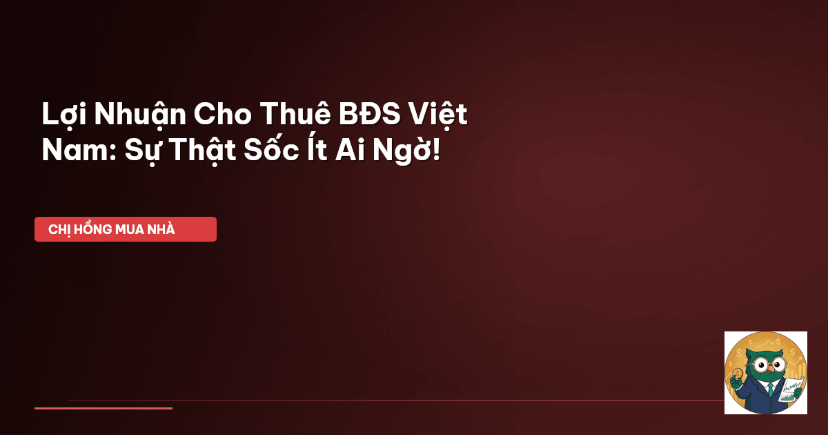 ⏱️ 17 phút đọc · 3355 từ Giới Thiệu: Giấc Mơ Nhà Cho Thuê Có Thực Sự 'Ngọt'? Chào cả nhà Cú Thông Thái của Chị Hồng! Mấy mẹ bỉm hay hỏi Chị Hồng lắm: "Chị ơi, em thấy người ta mua nhà rồi cho thuê là có tiền đều mỗi tháng, sướng ghê! Giờ em có ít tiền nhàn rỗi, hay em cũng đi mua căn hộ, hay nhà phố cho thuê để kiếm thêm thu nhập cho con sữa? Lợi nhuận có 'ngon' không chị?". Nghe thì hấp dẫn lắm đúng không các mẹ? Ai cũng mơ một kênh thu nhập thụ động, mỗi tháng tiền cứ đều đặn về tài khoản mà k…