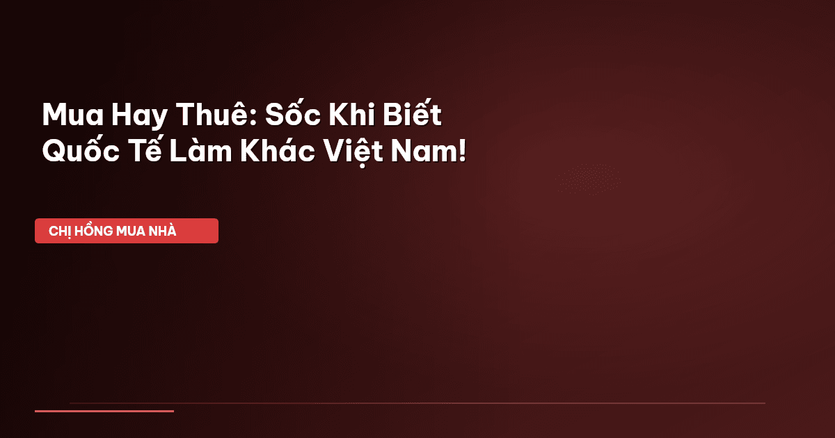 Chị Hồng biết, mỗi gia đình đều ấp ủ giấc mơ về một tổ ấm riêng. Nhưng giữa bộn bề thông tin và giá cả thị trường thì cái quyết định "thuê hay mua" nó cứ lẩn quẩn mãi trong đầu. Liệu mình có đang bỏ lỡ cơ hội, hay lại đang ôm một cục nợ khổng lồ vào người? Hôm nay, Chị Hồng sẽ cùng cả nhà mình "bung lụa" cái chủ đề nóng hổi này, không chỉ nhìn ở Việt Nam mà còn "ngó nghiêng" sang bạn bè quốc tế xem họ đang làm gì nhé. Đảm bảo có nhiều điều bất ngờ mà các mẹ không ngờ tới đâu!