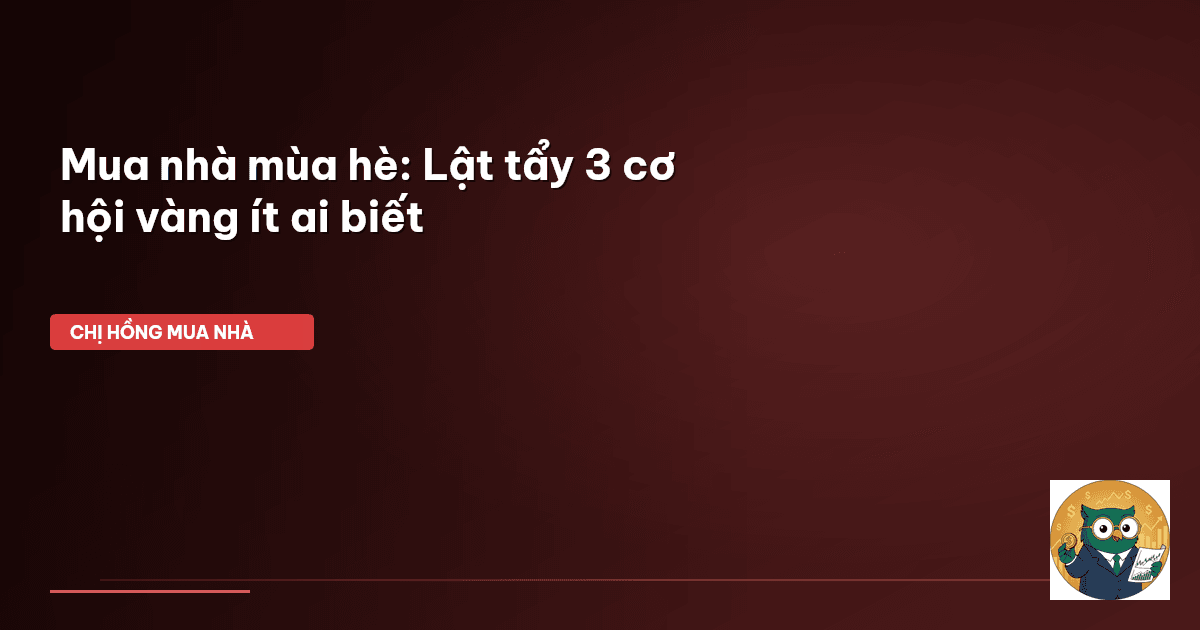 ⏱️ 11 phút đọc · 2025 từ Giới Thiệu: Mùa hè – "Mùa ảm đạm" hay "Mùa vàng" của Bất Động Sản? Chào cả nhà Cú Thông Thái! Chị Hồng biết nhiều mẹ bỉm, nhiều gia đình vẫn băn khoăn không biết có nên mua nhà vào mùa hè không. Trời nắng nóng thế này, ai cũng muốn ở nhà nghỉ ngơi hoặc đi du lịch cho mát mẻ, ít ai nghĩ đến chuyện đi xem nhà, chạy hồ sơ pháp lý lằng nhằng đúng không? Cứ nghĩ mùa hè là thị trường bất động sản (BĐS) sẽ ảm đạm, ít giao dịch, chẳng có gì hay ho. Nhưng mà cả nhà ơi, suy nghĩ đ…