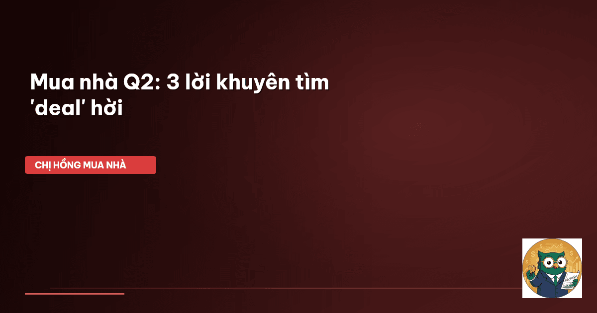 ⏱️ 13 phút đọc · 2455 từ Giới Thiệu: Mẹ Bỉm Ơi, Q2 Này Có 'Deal' Nhà Đất Đang Chờ! Chào cả nhà Cú Thông Thái! Chị Hồng biết, cái khao khát có một tổ ấm riêng, một căn nhà đứng tên mình luôn cháy bỏng trong lòng mỗi gia đình, đặc biệt là các mẹ bỉm muốn con có không gian tốt nhất để lớn lên. Nhưng thị trường nhà đất thì cứ như "ma trận" vậy đó, lúc lên lúc xuống, làm sao mà mình biết khi nào nên xuống tiền để không bị hớ? Nhiều người cứ nghĩ mua nhà là phải thật nhiều tiền, phải đợi đến khi nào k…