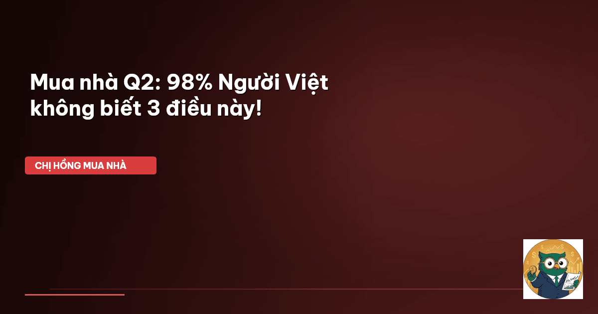 ⏱️ 12 phút đọc · 2291 từ Giới Thiệu: Đừng Vội "Xuống Tiền" Nếu Chưa Đọc Kỹ Chào cả nhà Cú Thông Thái thân yêu của Chị Hồng! Dạo này đi chợ hay nghe mấy chị em xôn xao hỏi: "Q2 này có nên 'xuống tiền' mua nhà không em?". Thật ra, câu hỏi này không hề đơn giản chút nào đâu các mẹ ạ. Thị trường bất động sản (BĐS) Việt Nam mình lúc nào cũng có những biến động bất ngờ, hệt như giá rau ngoài chợ vậy, hôm nay thế này mai đã khác rồi. Nhiều người cứ nghĩ Q2 là "thời điểm vàng" để mua nhà vì nghe đâu thị…