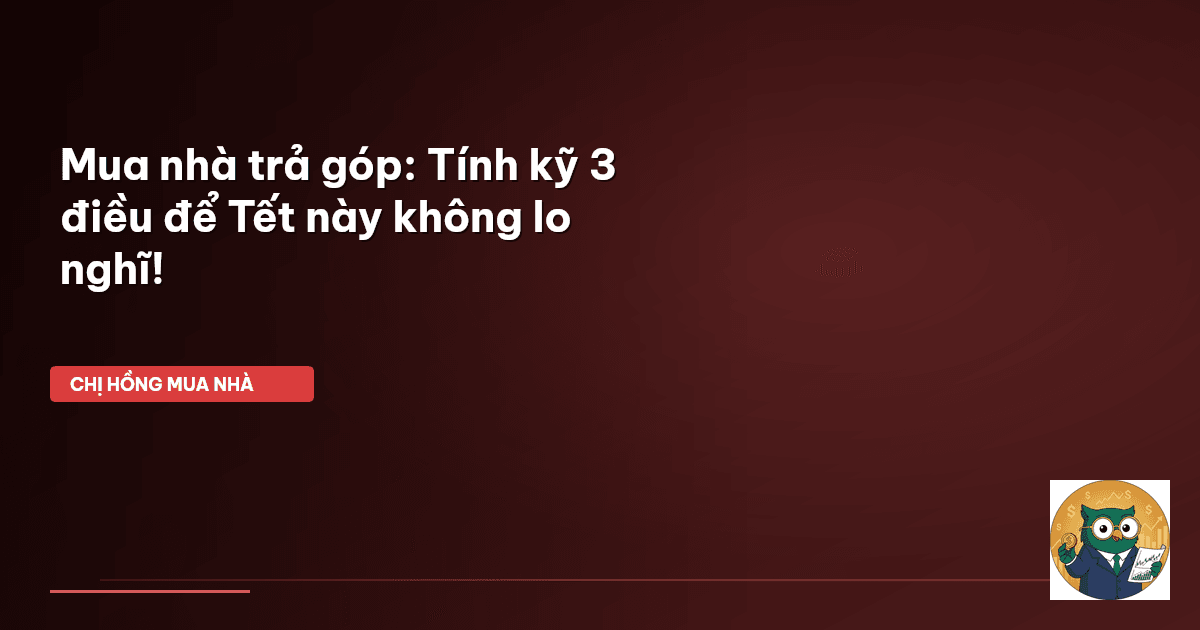 ⏱️ 12 phút đọc · 2358 từ Giới Thiệu: Đón Tết An Yên Hay 'Đau Đầu' Vì Nợ Nhà? Chào cả nhà Cú Thông Thái thân mến! Chị Hồng biết là cứ gần Tết đến là câu chuyện nhà cửa lại nóng hổi hơn bao giờ hết, đặc biệt là với các gia đình trẻ đang ấp ủ giấc mơ sở hữu căn nhà đầu tiên. Nhiều người cứ nghĩ, có tiền đặt cọc rồi, ngân hàng duyệt vay nữa là xong, cứ thế mà rinh nhà về đón Tết. Nhưng mà cả nhà ơi, đời không như là mơ đâu ạ! Mua nhà trả góp không chỉ đơn giản là tháng nào cũng đóng đúng hạn đâu. Nó…
