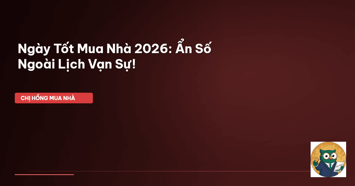 ⏱️ 15 phút đọc · 2804 từ Giới Thiệu: Mua Nhà 2026 — Đón Lộc Hay Đón Lo? Chào cả nhà Cú Thông Thái! Chị Hồng biết là không ít gia đình đang ấp ủ giấc mơ an cư lạc nghiệp, đặc biệt là trong năm 2026. Ai cũng mong muốn chọn được "ngày lành tháng tốt" để mọi sự hanh thông, công việc làm ăn thuận lợi, con cái ngoan ngoãn. Nhưng liệu ngày tốt mua nhà chỉ đơn thuần là nhìn vào cuốn lịch vạn sự hay còn "ẩn số" nào khác mà chúng ta chưa biết? Nhiều mẹ bỉm, nhiều anh chị em lần đầu mua nhà cứ loay hoay hỏ…