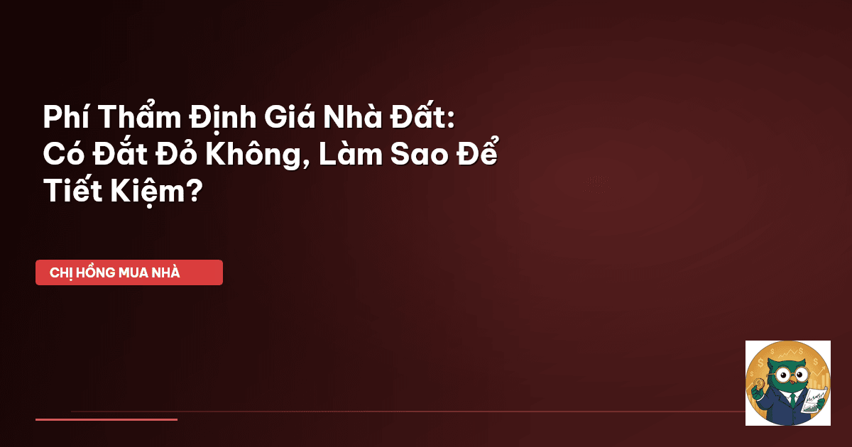 Chào cả nhà Cú Thông Thái thân yêu của Chị Hồng! Mấy nay Chị Hồng nhận được nhiều tin nhắn của các mẹ bỉm, các gia đình trẻ hỏi về khoản phí thẩm định giá nhà đất khi đi vay ngân hàng mua nhà. "Chị Hồng ơi, em nghe nói phí này cao lắm, có khi mấy chục triệu lận?" hay "Có cách nào giảm bớt khoản này không chị?". Ôi chao, đúng là ai cũng lo lắng cho ví tiền của mình mà, đặc biệt là khi phải gom góp từng đồng để mua được mái ấm.